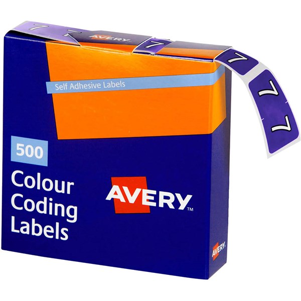 AVERY 43247 LATERAL FILE LABEL SIDE TAB YEAR CODE 7 25 X 38MM PURPLE PACK 500