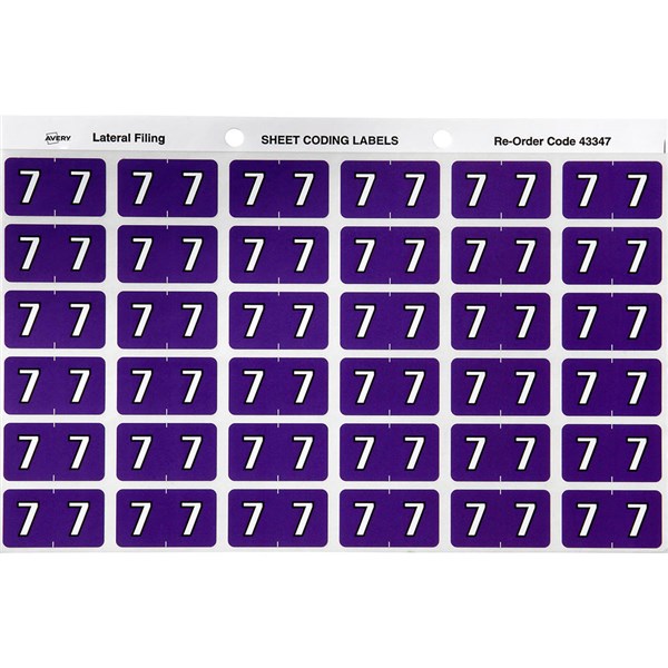 AVERY 43347 LATERAL FILE LABEL SIDE TAB YEAR CODE 7 25 X 38MM PURPLE PACK 180