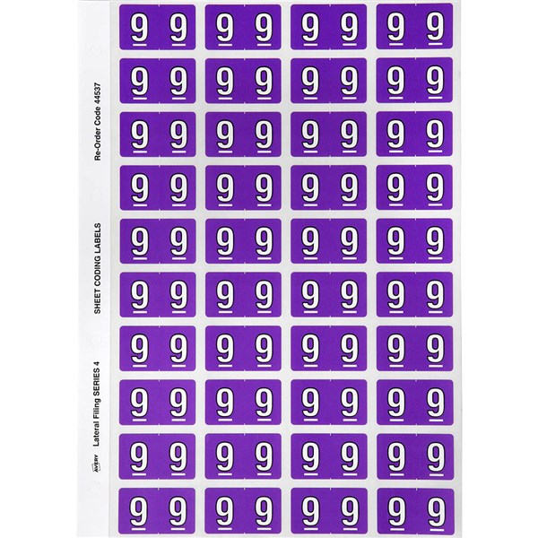 AVERY 44537 LATERAL FILE LABEL SIDE TAB YEAR CODE 9 25 X 42MM PURPLE PACK 240