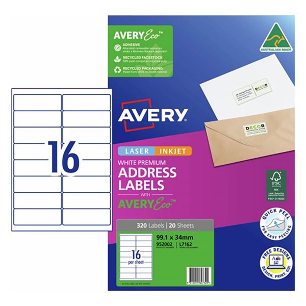 - Customise your labels with our free and easy-to-use template software; Avery Design and Print - available at averyproducts.com.au/print