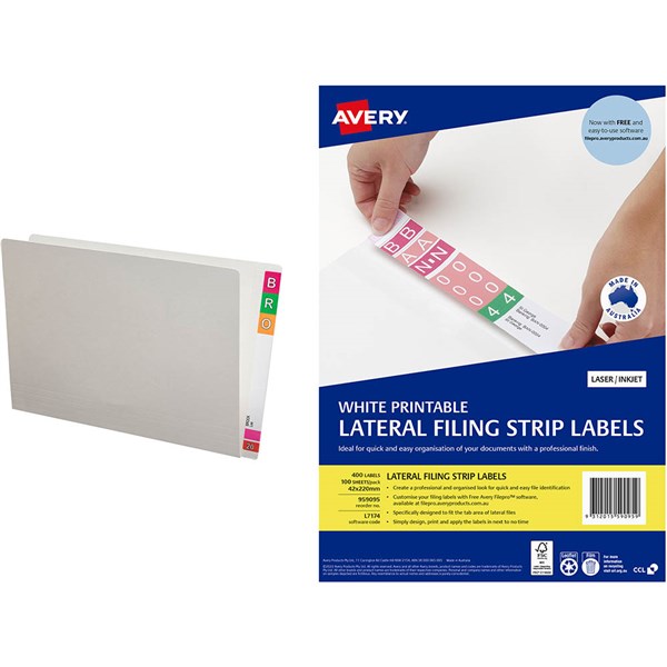 • Includes 300 Foolscap White Lateral Files (7005839), 400 Avery Lateral Filing Labels (7005388)