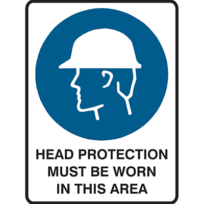 BRADY MANDATORY SIGN HEAD PROTECTION MUST BE WORN IN THIS AREA 450 X 300MM POLYPROPYLENE