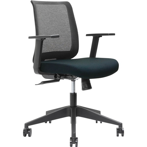 - Upholstered with black mesh back and B-20 black fabric seat and a 5-start nylon base