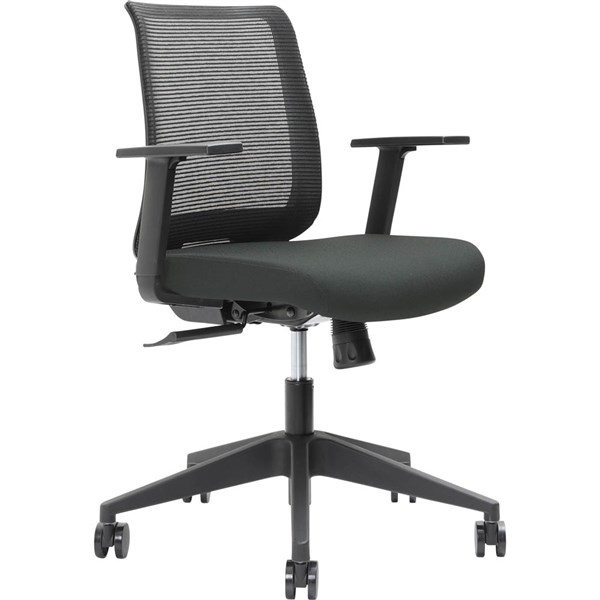 - Upholstered with black mesh back and B-20 black fabric seat and a 5-start nylon base
