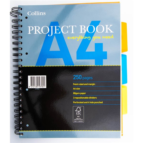 COLLINS ESSENTIAL PROJECT BOOK A4 250PAGES GREY