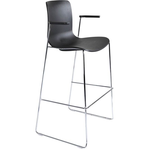 DAL ACTI BAR STOOL SLED BASE HIGH 760MM ARMS BLACK ARM-PADS AND CHROME FRAME BLACK POLYPROP SHELL
