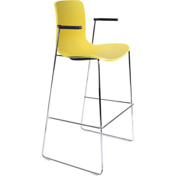 DAL ACTI BAR STOOL SLED BASE HIGH 760MM ARMS BLACK ARM-PADS AND CHROME FRAME YELLOW POLYPROP SHELL