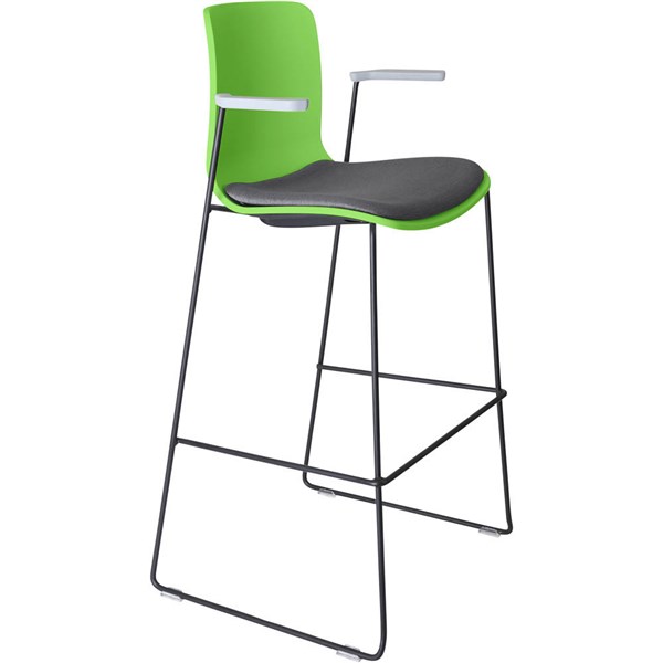 DAL ACTI BAR STOOL SLED BASE HIGH 760MM ARMS LIGHT GREY ARM-PADS AND BLACK POWDERCOAT FRAME GREEN POLYPROP SHELL