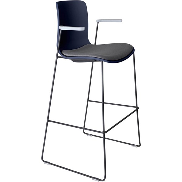 DAL ACTI BAR STOOL SLED BASE HIGH 760MM ARMS LIGHT GREY ARM-PADS AND BLACK POWDERCOAT FRAME NAVY BLUE POLYPROP SHELL