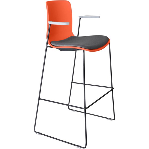 DAL ACTI BAR STOOL SLED BASE HIGH 760MM ARMS LIGHT GREY ARM-PADS AND BLACK POWDERCOAT FRAME ORANGE POLYPROP SHELL