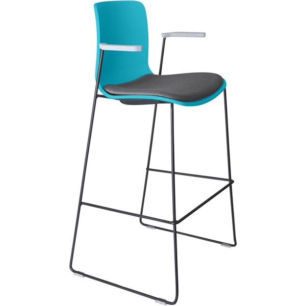 DAL ACTI BAR STOOL SLED BASE HIGH 760MM ARMS LIGHT GREY ARM-PADS AND BLACK POWDERCOAT FRAME TEAL POLYPROP SHELL