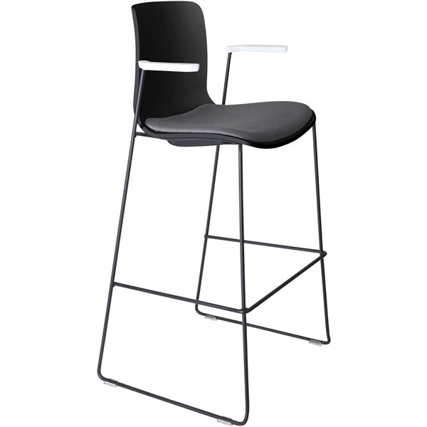 DAL ACTI BAR STOOL SLED BASE HIGH 760MM ARMS WHITE ARM-PADS AND BLACK POWDERCOAT FRAME BLACK POLYPROP SHELL