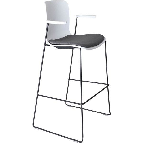 DAL ACTI BAR STOOL SLED BASE HIGH 760MM ARMS WHITE ARM-PADS AND BLACK POWDERCOAT FRAME WHITE POLYPROP SHELL
