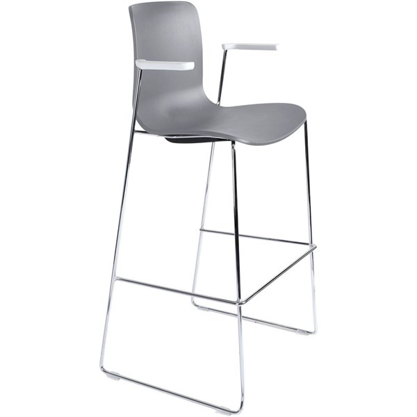 DAL ACTI BAR STOOL SLED BASE HIGH 760MM ARMS WHITE ARM-PADS AND CHROME FRAME LIGHT GREY POLYPROP SHELL