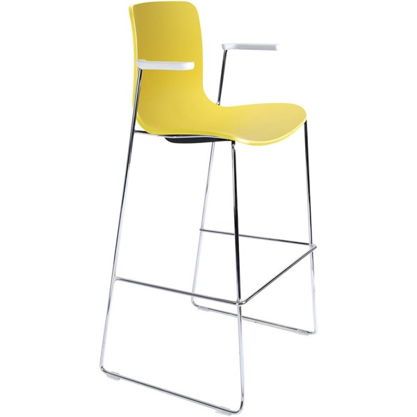 DAL ACTI BAR STOOL SLED BASE HIGH 760MM ARMS WHITE ARM-PADS AND CHROME FRAME YELLOW POLYPROP SHELL