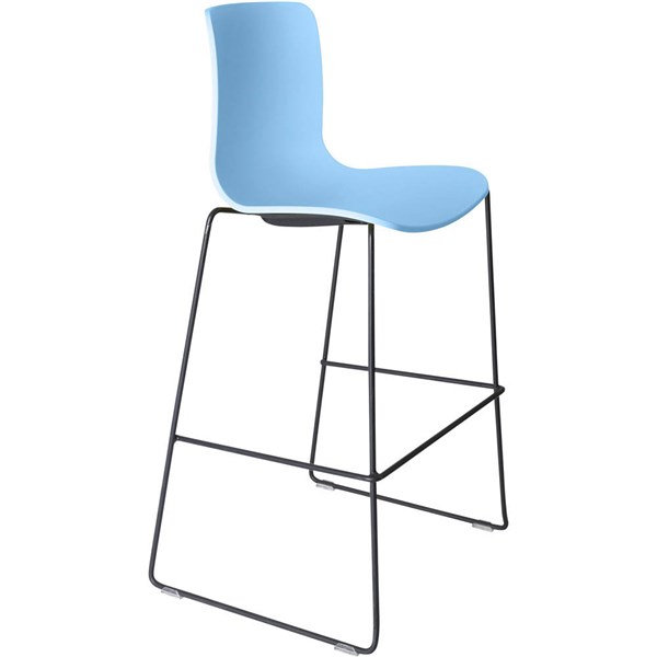DAL ACTI BAR STOOL SLED BASE HIGH 760MM BLACK POWDERCOAT FRAME PALE BLUE POLYPROP SHELL