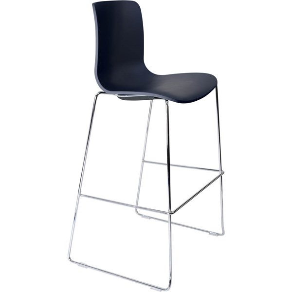 DAL ACTI BAR STOOL SLED BASE HIGH 760MM CHROME FRAME NAVY BLUE POLYPROP SHELL