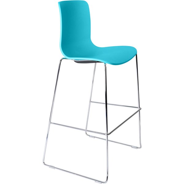 DAL ACTI BAR STOOL SLED BASE HIGH 760MM CHROME FRAME TEAL POLYPROP SHELL