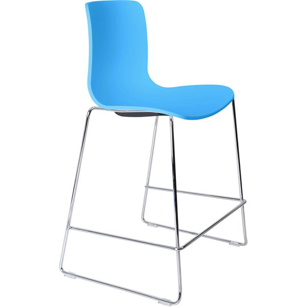 DAL ACTI BAR STOOL SLED BASE LOW 630MM CHROME FRAME OCEAN BLUE POLYPROP SHELL
