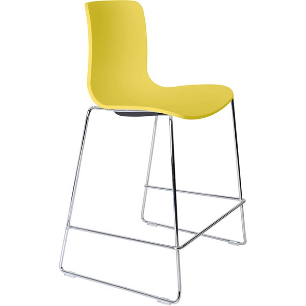 DAL ACTI BAR STOOL SLED BASE LOW 630MM CHROME FRAME YELLOW POLYPROP SHELL