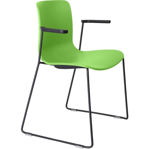 DAL ACTI CHAIR SLED BASE ARMS BLACK ARM-PADS AND BLACK POWDERCOAT FRAME GREEN POLYPROP SHELL