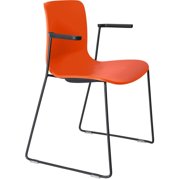 DAL ACTI CHAIR SLED BASE ARMS BLACK ARM-PADS AND BLACK POWDERCOAT FRAME ORANGE POLYPROP SHELL