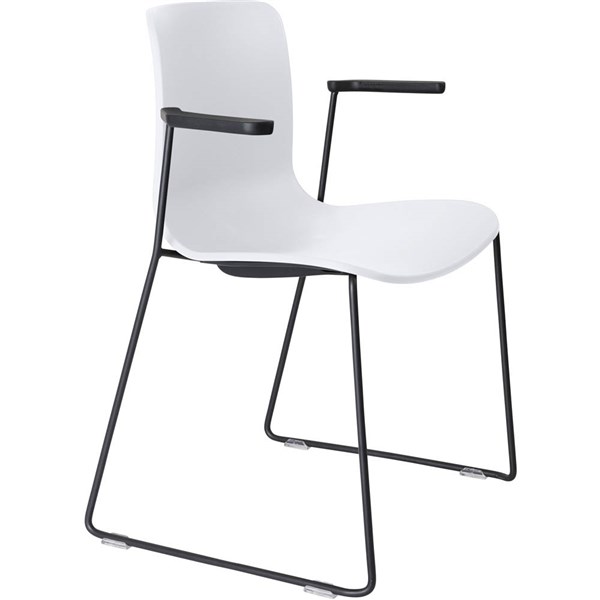 DAL ACTI CHAIR SLED BASE ARMS BLACK ARM-PADS AND BLACK POWDERCOAT FRAME WHITE POLYPROP SHELL