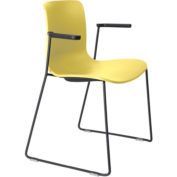 DAL ACTI CHAIR SLED BASE ARMS BLACK ARM-PADS AND BLACK POWDERCOAT FRAME YELLOW POLYPROP SHELL