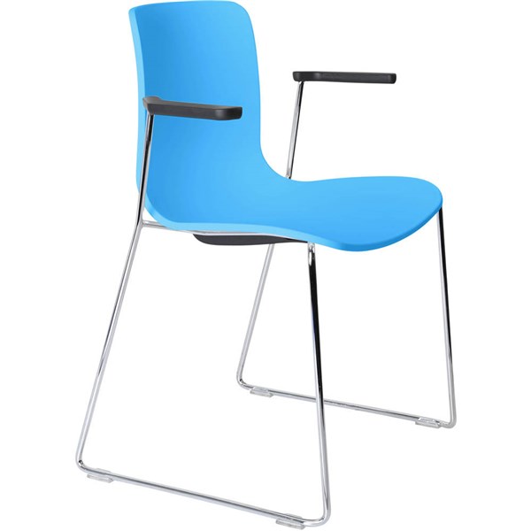 DAL ACTI CHAIR SLED BASE ARMS BLACK ARM-PADS AND CHROME FRAME OCEAN BLUE POLYPROP SHELL