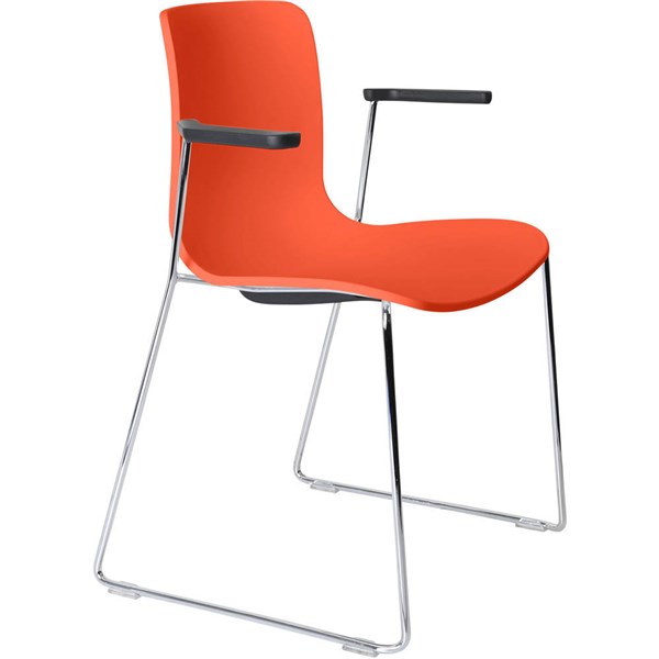 DAL ACTI CHAIR SLED BASE ARMS BLACK ARM-PADS AND CHROME FRAME ORANGE POLYPROP SHELL
