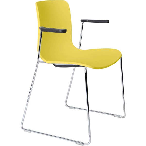 DAL ACTI CHAIR SLED BASE ARMS BLACK ARM-PADS AND CHROME FRAME YELLOW POLYPROP SHELL