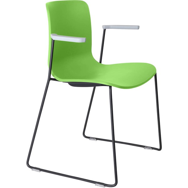 DAL ACTI CHAIR SLED BASE ARMS LIGHT GREY ARM-PADS AND BLACK POWDERCOAT FRAME GREEN POLYPROP SHELL