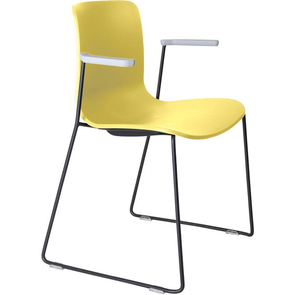 DAL ACTI CHAIR SLED BASE ARMS LIGHT GREY ARM-PADS AND BLACK POWDERCOAT FRAME YELLOW POLYPROP SHELL
