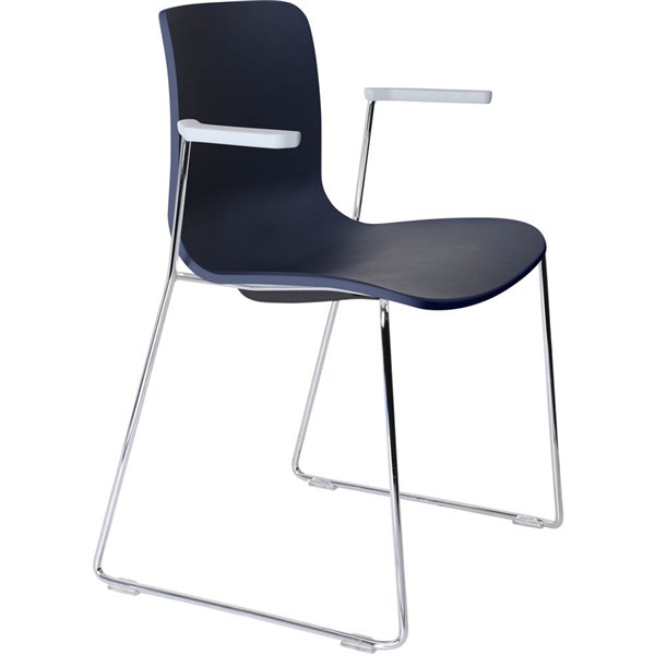 DAL ACTI CHAIR SLED BASE ARMS LIGHT GREY ARM-PADS AND CHROME FRAME NAVY BLUE POLYPROP SHELL