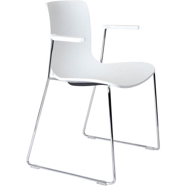 DAL ACTI CHAIR SLED BASE ARMS WHITE ARM-PADS AND CHROME FRAME WHITE POLYPROP SHELL