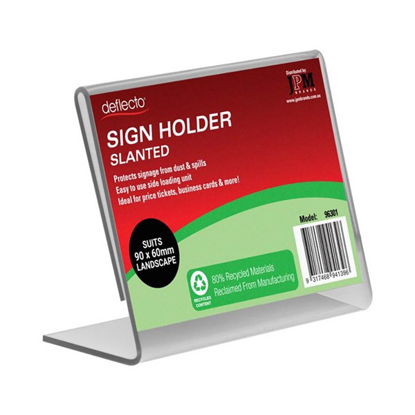 This Deflecto Recycled Business/Place Card Holder is perfect for displaying your business information and contact details in a professional manner