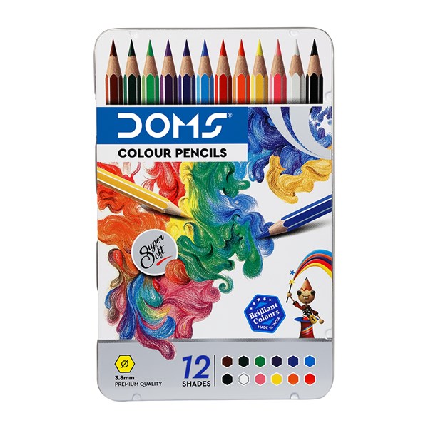 DOMS SUPERSOFT COLOURED PENCILS - FLAT TIN BOX 12 COLOURS