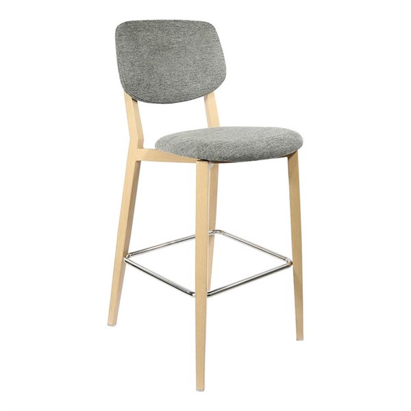 DURAFURN ATLANTA BARSTOOL LARGE BACKREST OAK FRAME/GREY FABRIC SEAT AND BACKREST