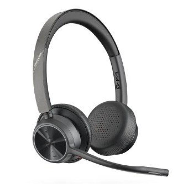 The HP Poly Voyager 4320 MS Teams Certified USB-C Headset 77Z30AA is a business-class wireless headset designed for professional communication and collaboration
