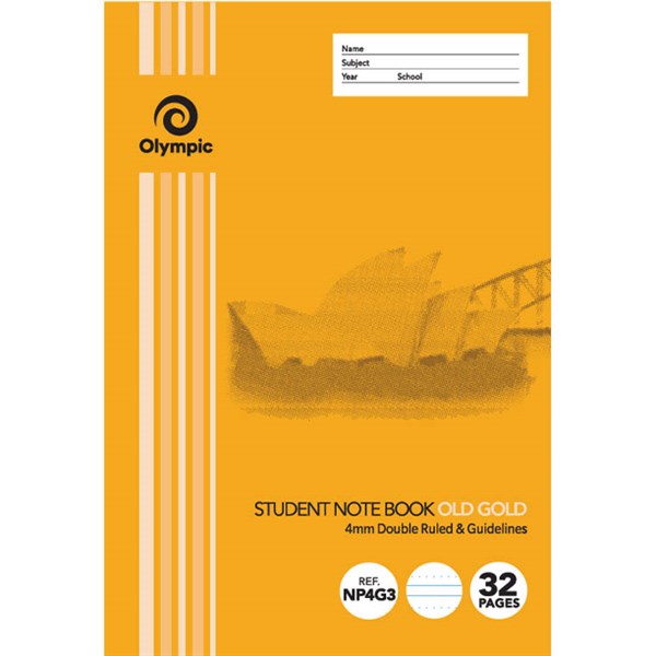 OLYMPIC NP4G3 EXERCISE BOOK NSW RULING DOUBLE RULED/GUIDELINES 4MM 55GSM 32 PAGE 250 X 176MM OLD GOLD PACK 20