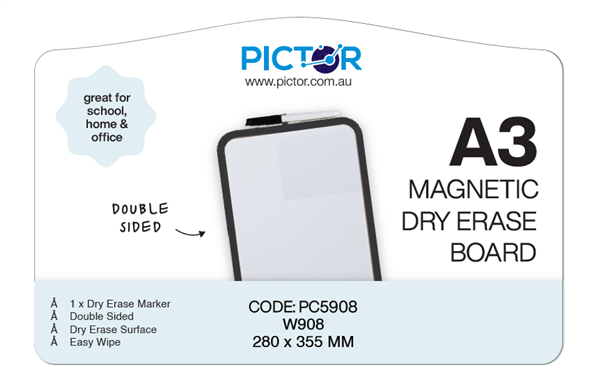 PICTOR MAGNETIC DRY ERASE A3 DOUBLE SIDED WHITEBOARD PVC INCL BLACK MARKER W908