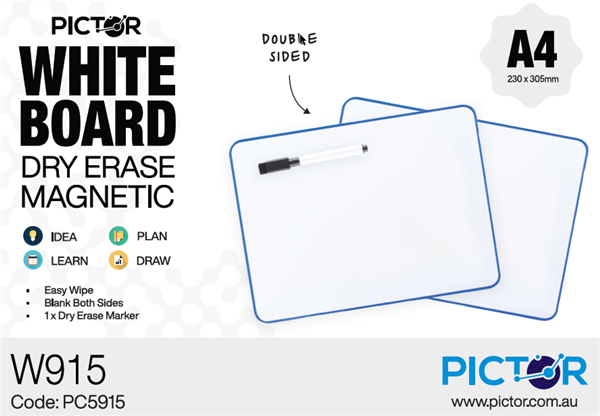 PICTOR MAGNETIC DRY ERASE A4 DOUBLE SIDED WHITEBOARD PE INCL BLACK MARKER W915