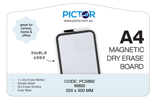 PICTOR MAGNETIC DRY ERASE A4 DOUBLE SIDED WHITEBOARD PVC INCL BLACK MARKER W892