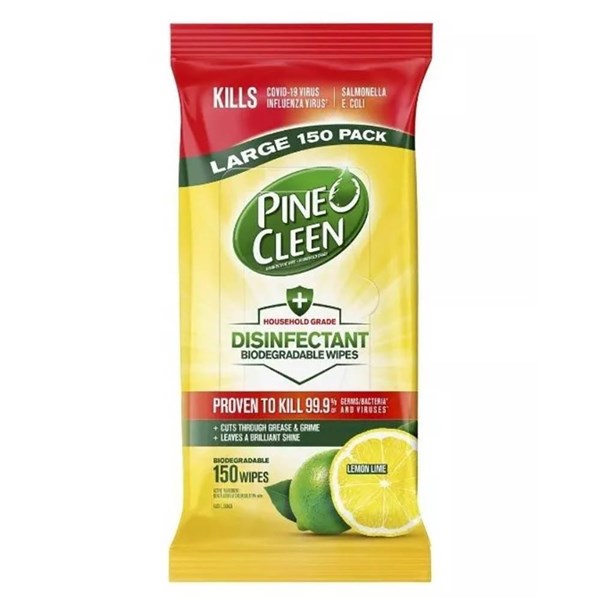 The Pine o cleen disinfectant wipes in lemon fragrance is a biodegradable wipes proven to kill 99.9 percent of germs, bacteria, and viruses including Covid-19 virus for household grade disinfection