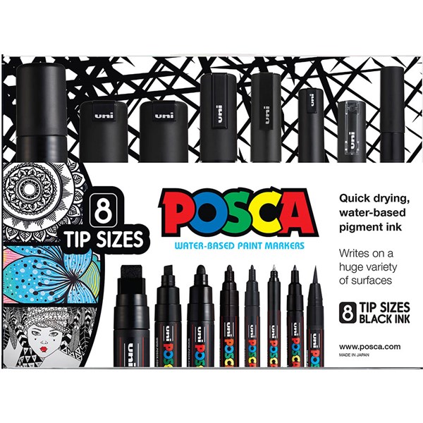 - The pen set contains 8 different sizes of Posca marker