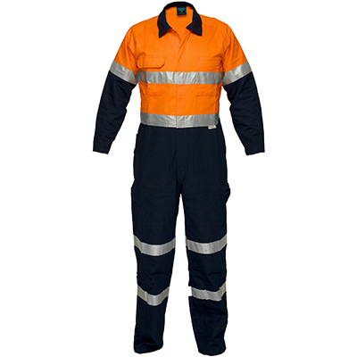 PRIME MOVER MA931 REGULAR WEIGHT COVERALL WITH METAL STUD CLOSURE AND TAPE 2-TONE ORANGE NAVY 89L
