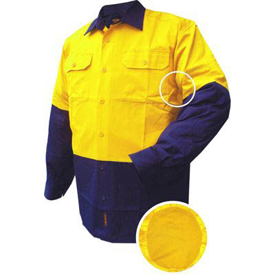 PRIME MOVER MS801 COTTON DRILL SHIRT LONG SLEEVE LIGHTWEIGHT 2-TONE YELLOW NAVY MEDIUM