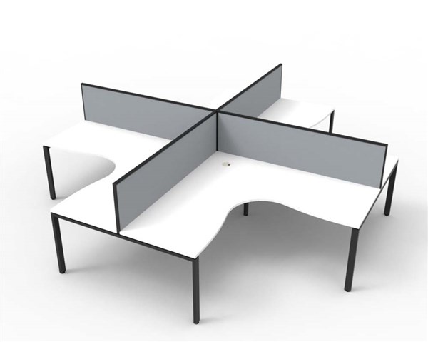 RAPID INFINITY DELUXE 4 PERSON PROFILE LEG CORNER WORKSTATION POD 1500 X 1500 X 750 X 730MM GREY SCREEN / NATURAL WHITE TOP / BLACK FRAME