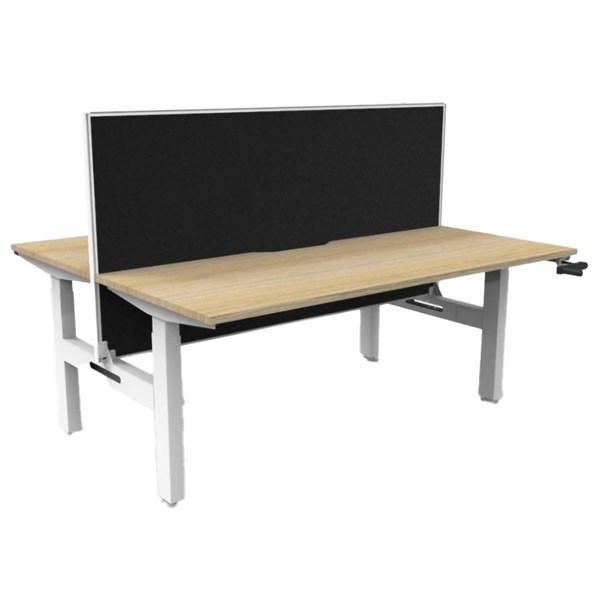 RAPIDLINE BOOST CRANK BACK TO BACK WORKSTATION WITH SCREEN 1800 X 1500 X 705MM NATURAL OAK TOP AND WHITE SATIN FRAME