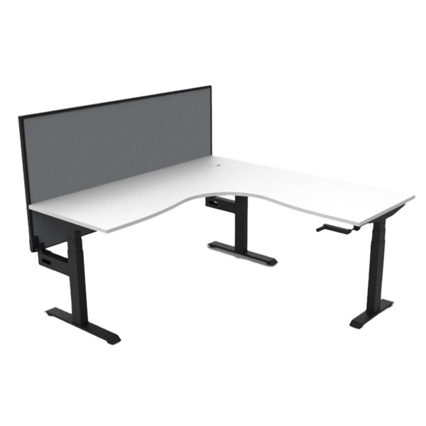 RAPIDLINE BOOST CRANK CORNER WORKSTATION WITH SCREEN 1500 X 1500 X 750MM NATURAL WHITE TOP AND BLACK SATIN FRAME